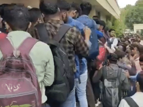 This crowd was of those youngsters who had come to give a job interview in a hotel. This interview was organized by Thermax Company in Lords Plaza Hotel of Ankleshwar. According to the officials, 10 job openings were there in the company for which 1800 people came for the interview. Apart from the crowd near the railing of the hotel, a large number of people were standing outside as well.