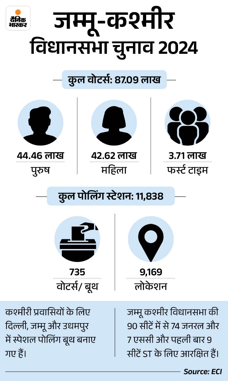 Voting will be held in three phases for 90 assembly seats of Jammu and Kashmir.