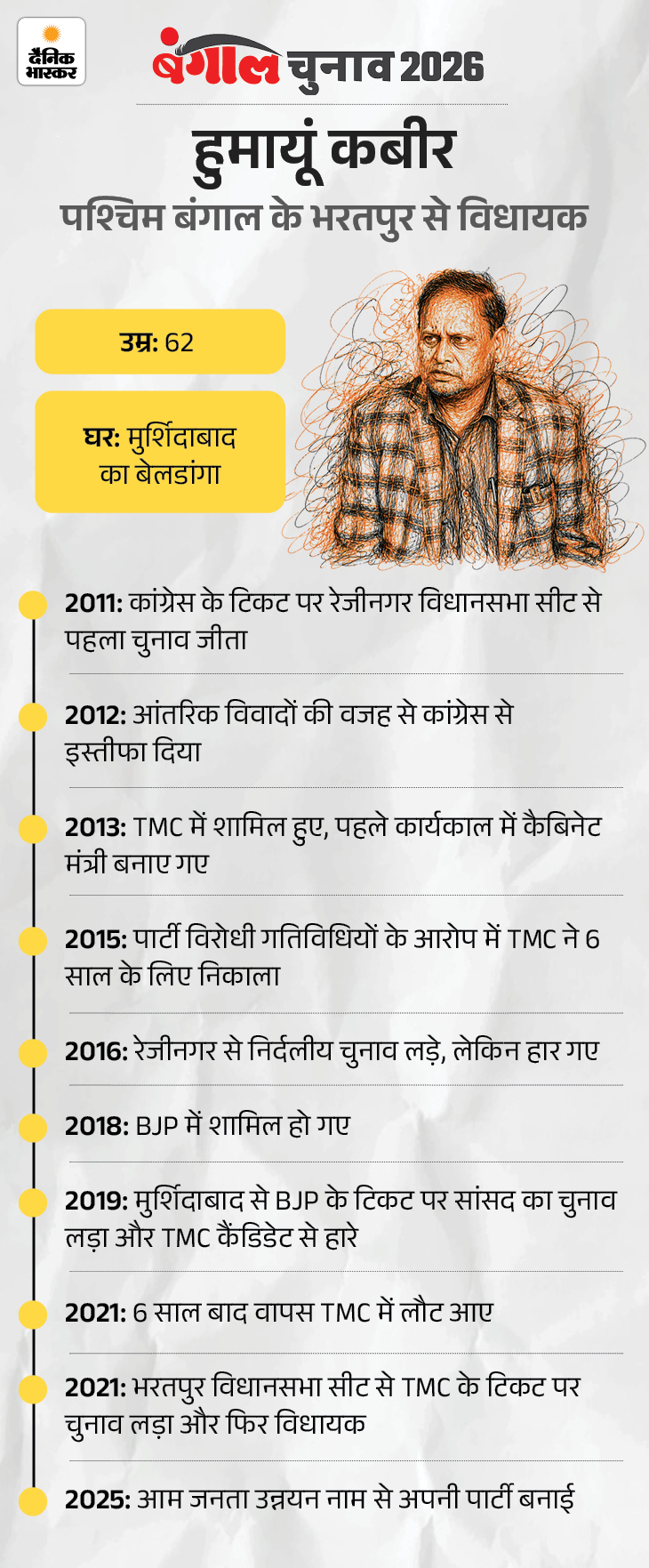 Humayun Kabir was once in Trinamool Congress. Later Aam Janata Unnayan Party was formed.