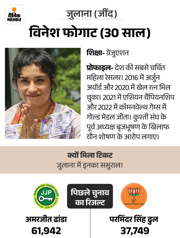 Vinesh Phogat came into limelight this year after being disqualified in the Paris Olympics. After this, he met senior Congress leader Rahul Gandhi and joined Congress. The same day the party had declared Vinesh as its candidate.