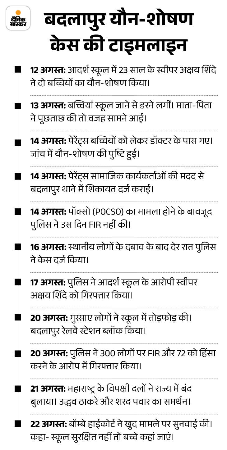 Child commission had said- school administration tried to suppress the case Susiben Shah, Chairperson of Maharashtra State Child Rights Protection Commission, had alleged that the school hid the crime instead of helping the parents of the girls. If the school had taken cognizance on time and lodged a complaint, the chaotic situation could have been avoided. The Commission has submitted a report to CM Eknath Shinde regarding the matter.
