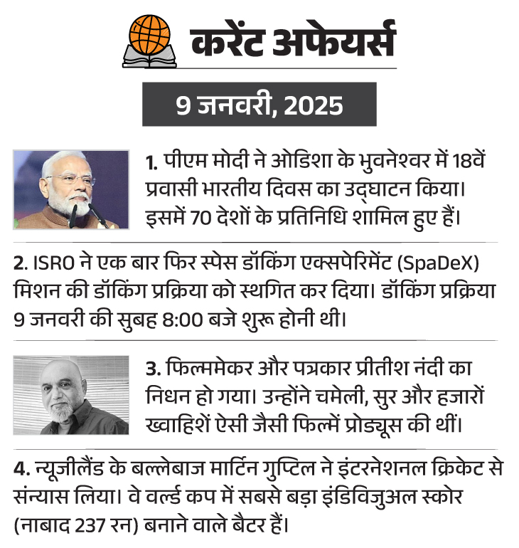 1. President Draupadi Murmu will address the concluding session of the ongoing 18th Pravasi Bharatiya Divas Conference in Bhubaneswar, Odisha.