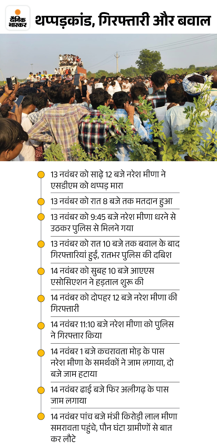 The uproar over slapping of SDM during by-election voting continues in Deoli-Uniara, Rajasthan. There was tension in the areas around Samravata (Tonk) and Aligarh town throughout the day on Thursday. After the arrest of Naresh Meena, his supporters also pelted stones.