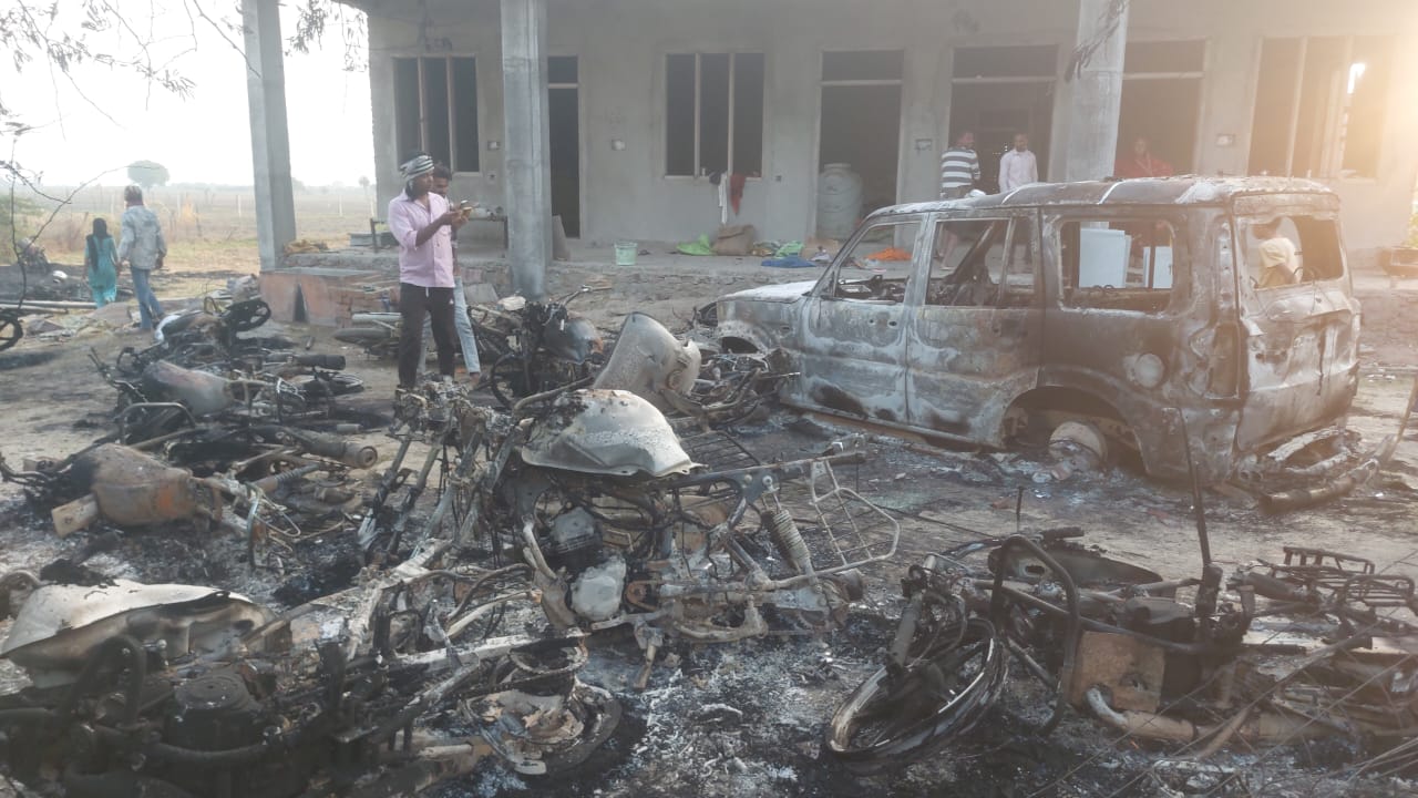 2. Ruckus due to slap, see the entire incident in VIDEO: Clash between villagers and police, stone pelting, vehicles burnt; Independent candidate Naresh Meena arrested