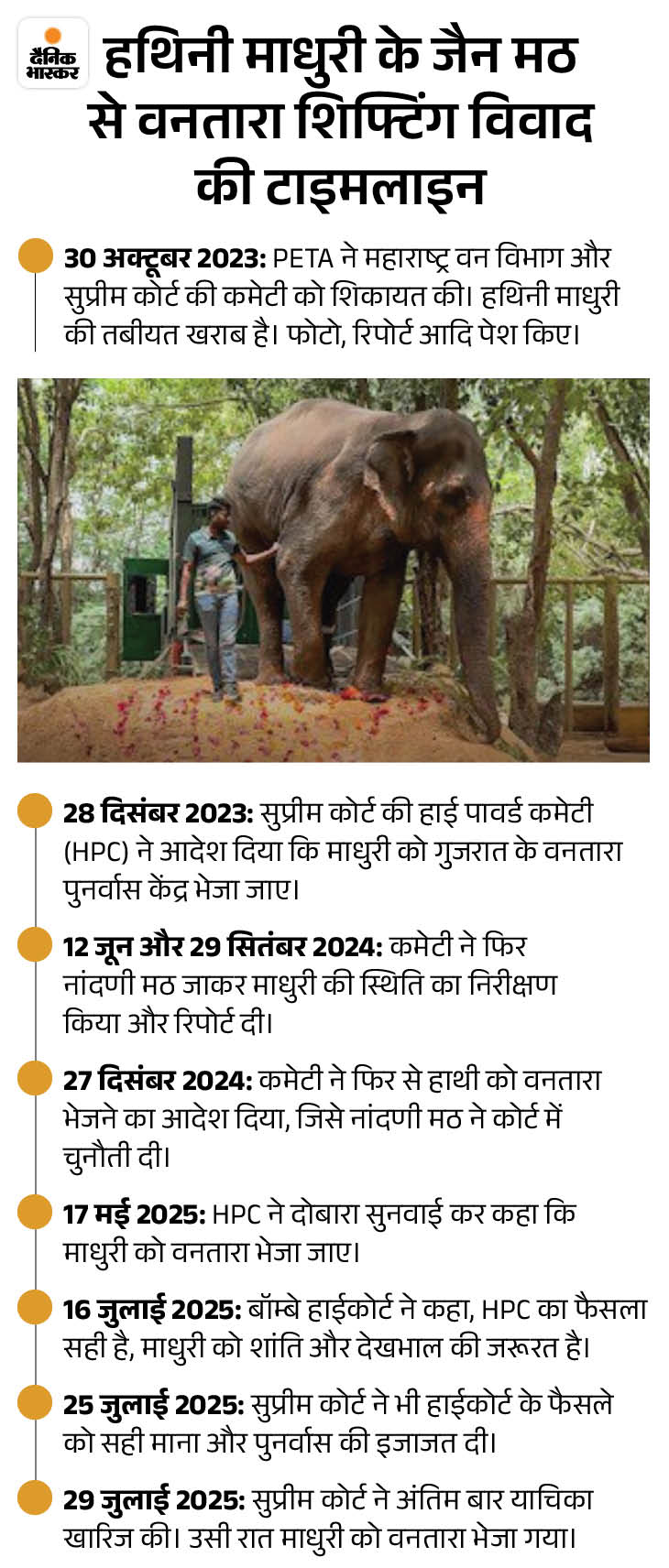 The first hearing on the petition to bring back Madhuri was held on August 14. During this, the bench of Justices Pankaj Mittal and PB Varale had told the petitioner’s lawyer CR Jaya Sukin that he was accusing Vantara. Whereas he has not been included as a party in the petition.