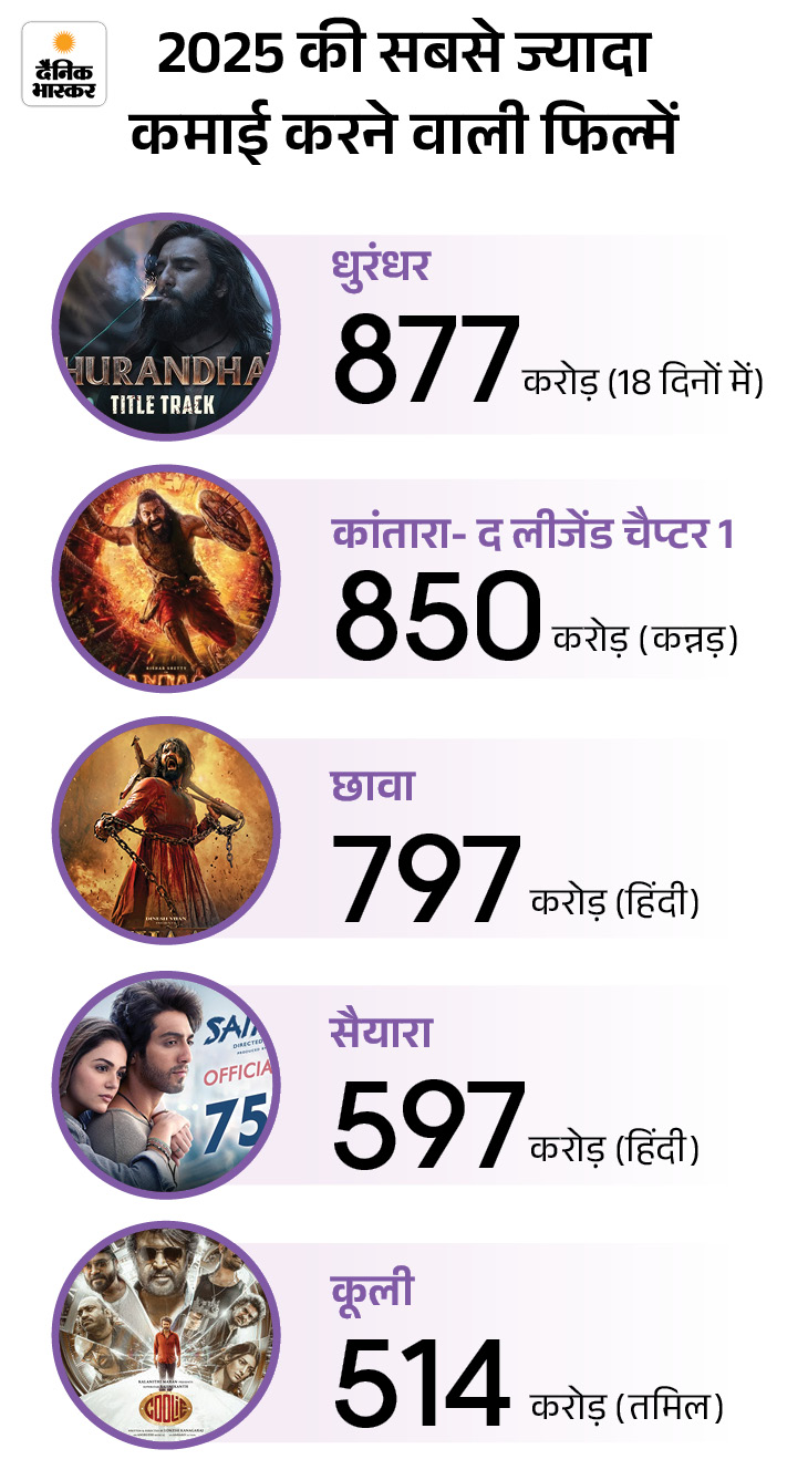 Ranveer Singh’s film Dhurandhar is continuously breaking big records at the box office. The total worldwide collection of the film has reached Rs 877 crore on the 18th day of its release. With this, Dhurandhar has become the highest grossing film of this year. Till now this record was held by Rishabh Shetty’s Kannada film Kantara: The Legend – Chapter 1 One, whose total collection is Rs 850 crore. However, in the history of Indian cinema, this film is at number 11 in terms of earnings.