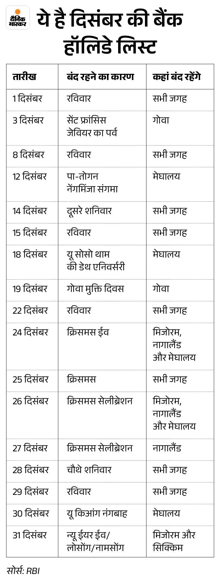 The month will start with a holiday on Sunday (1st December). Banks will remain closed in most parts of the country on Christmas on 25th December. Here we are telling you about the bank holidays of the month of December.