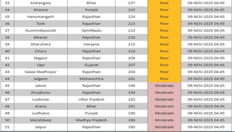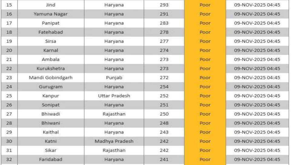 Delhi NCR Air Pollution: Delhi and the National Capital Region (NCR) are grappling with a severe pollution crisis. Noida, Delhi and Ghaziabad rank among the most polluted cities in India, with Noida at the top, Delhi second and Ghaziabad third. Rohtak and Bahadurgarh in Haryana follow, while Gurugram records poor air but ranks 24th. The ongoing cold and forecasted weather patterns show no immediate relief from the rising pollution levels. Authorities are closely monitoring the situation.