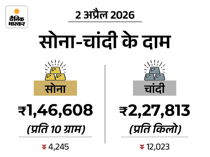 At the same time, one kg silver decreased by Rs 12,023 to Rs 2.28 lakh, which was Rs 2.40 lakh on March 25. Due to America-Iran war, gold has become cheaper by Rs 12,489 and silver by Rs 38,887 in 34 days.