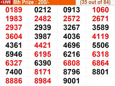 WINNING NUMBERS FOR 8TH PRIZE OF RS 200 ARE