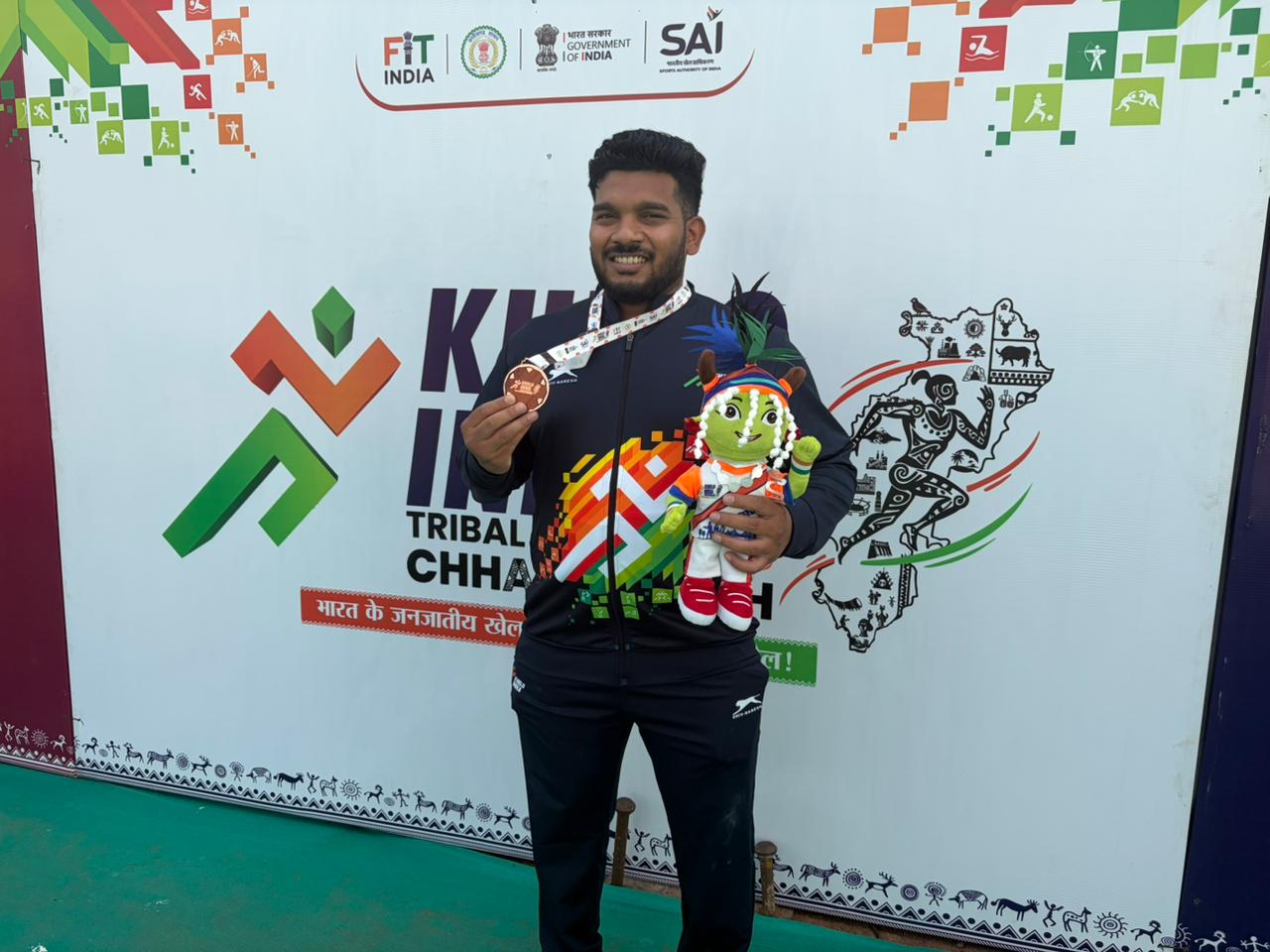 Lucky Babu Markam brought the third and final weightlifting medal for Chhattisgarh, competing in the men’s 110kg category. Having dedicated his life to sports, Lucky also has coaching experience at SAI and is currently training athletes in Ranchi.