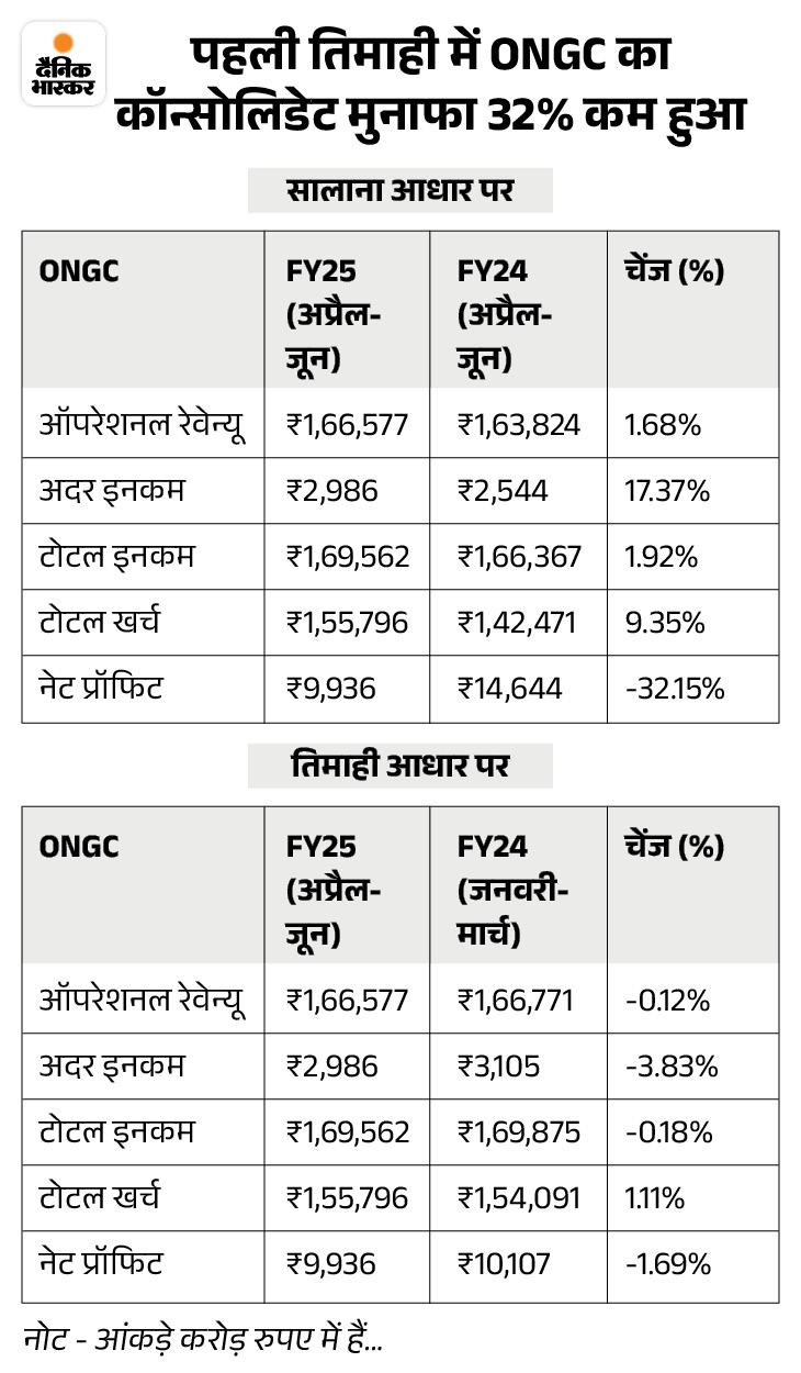 Oil and Natural Gas Corporation i.e. ONGC has made a net profit (consolidated net profit) of Rs 9,936 crore in the first quarter of the financial year 2024-25. It has decreased by 32% on an annual basis. In the same quarter a year ago, the company had recorded a profit of Rs 14,644 crore.