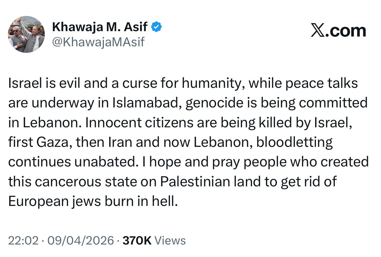 Pakistan’s Defence Minister Khawaja Asif has deleted the social media post, in which he targeted Israelcalling it “evil and a curse for humanity, “cancerous, and “to get rid of European jews.”