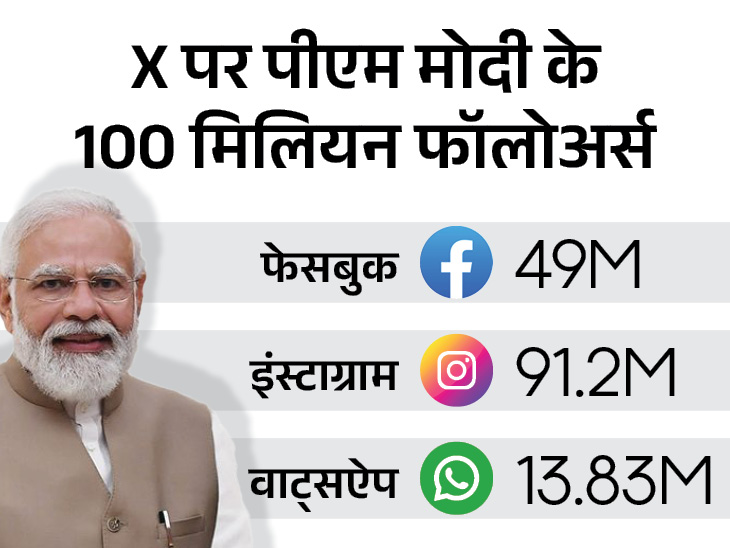 PM Modi crossed 100 million followers on X: became the most followed global leader, also has 91.2 M followers on Instagram