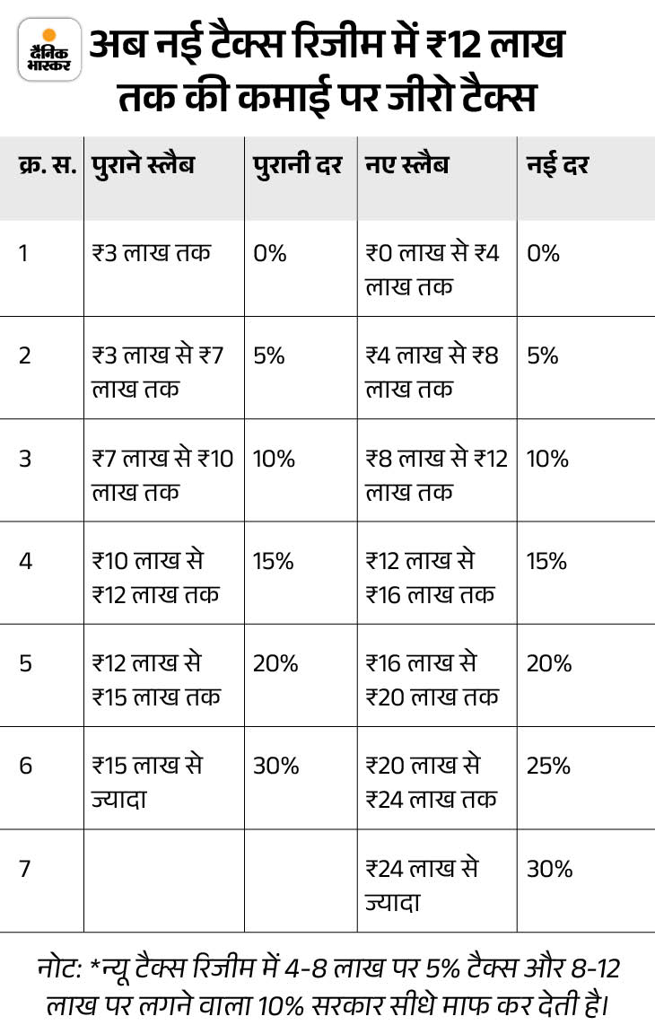 Under the new tax regime, there will now be zero tax on earnings up to ₹ 4 lakh. After this, the exemption has been increased to ₹60,000 on income up to ₹12 lakh. This means that if your annual income is ₹ 12 lakh, then after getting the rebate you will not have to pay even Rs 1 tax. If standard deduction of ₹ 75,000 is also added to this, then salary up to ₹ 12.75 lakh will be completely tax free.