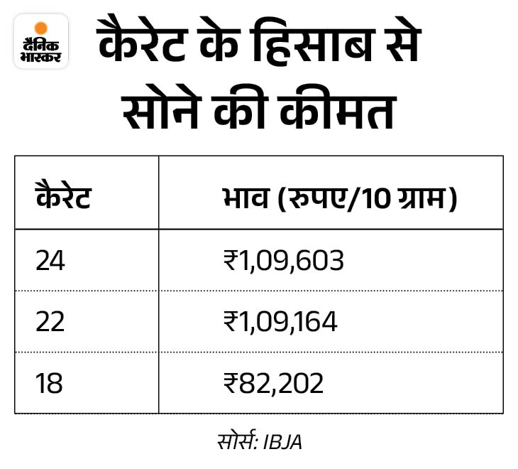 Today the price of gold and silver falls: Gold fell ₹ 104 to ₹ 1,09,603; Silver ₹ 1.28 lakh per kg is being sold